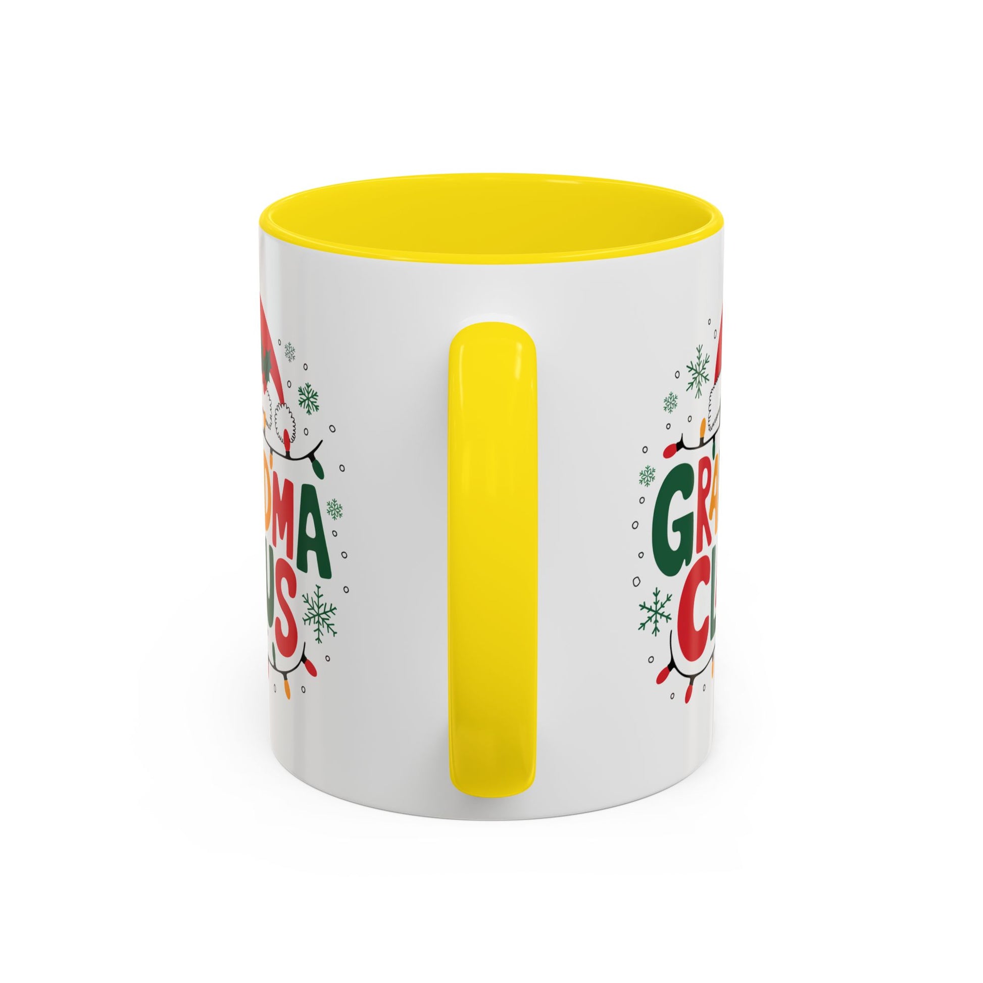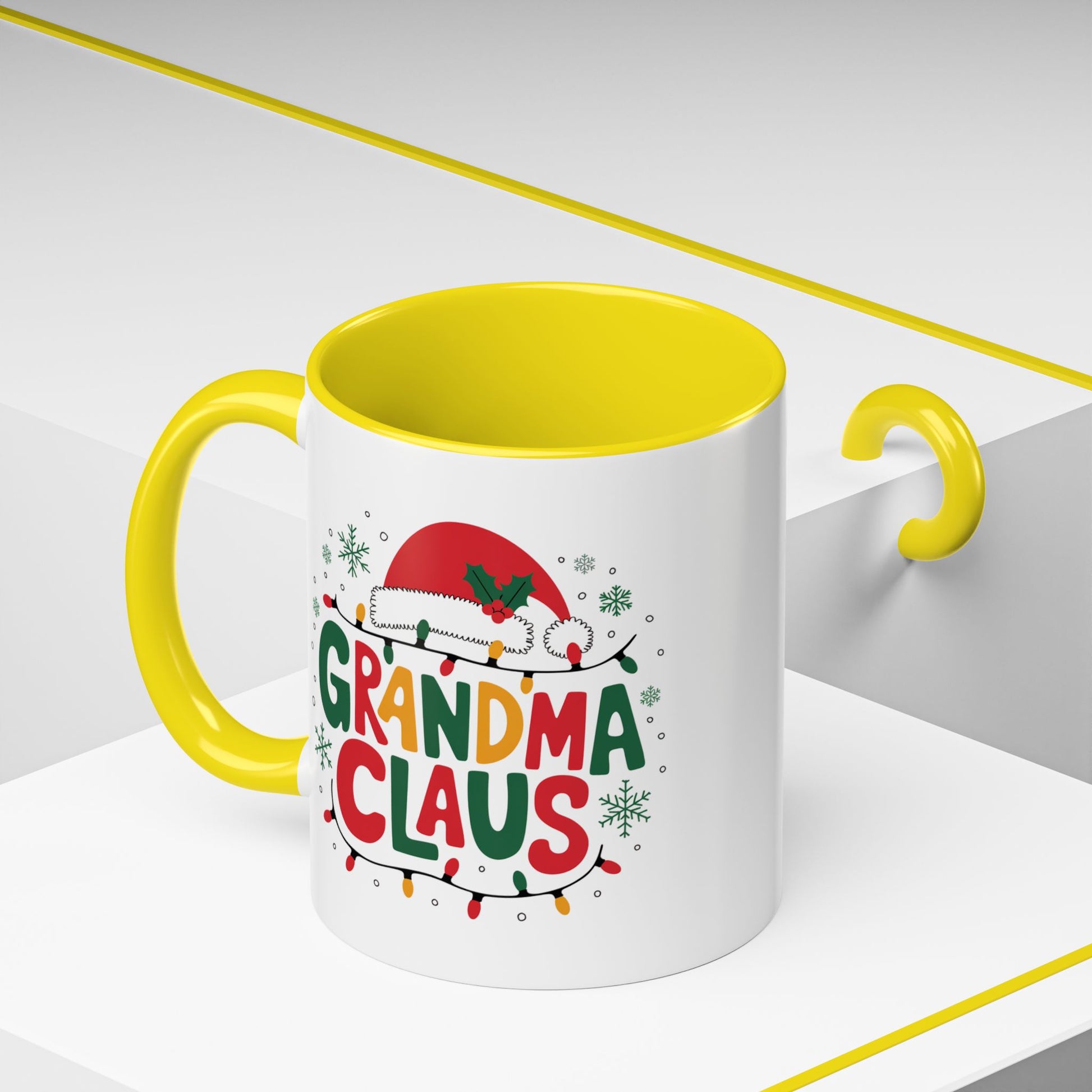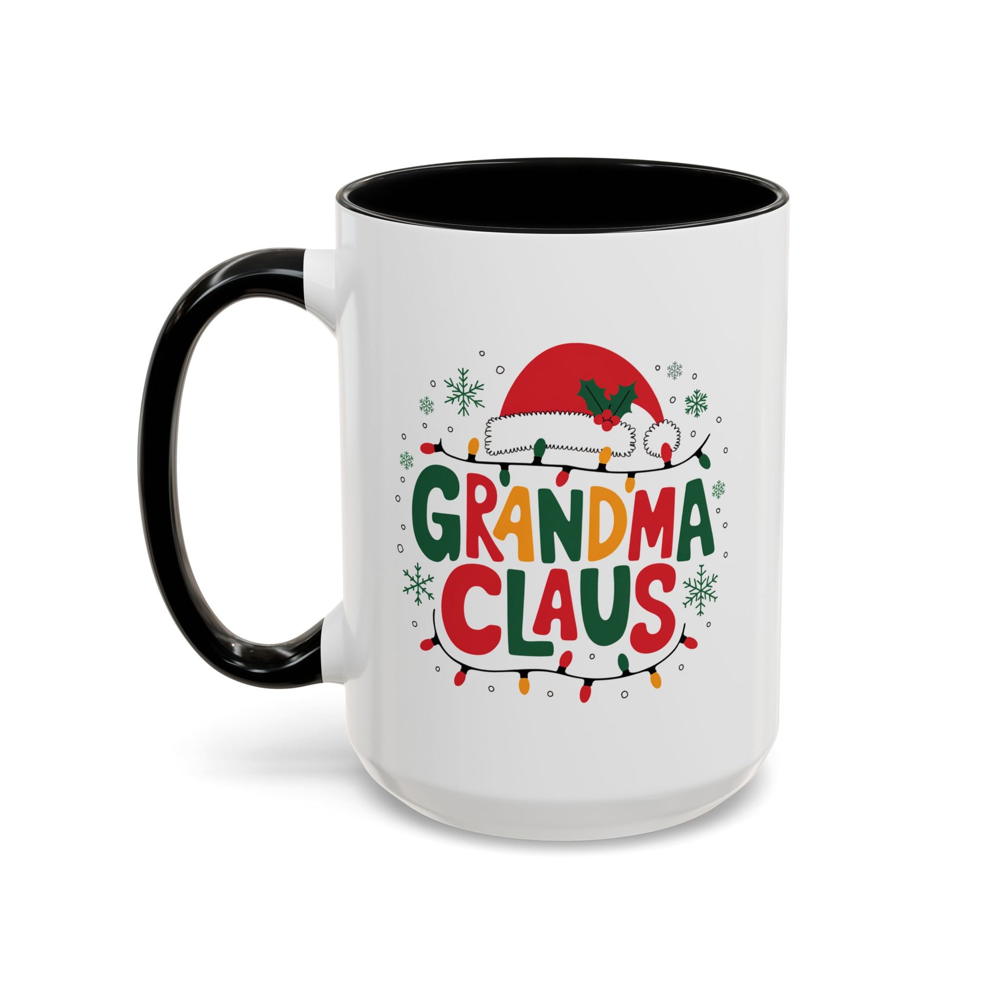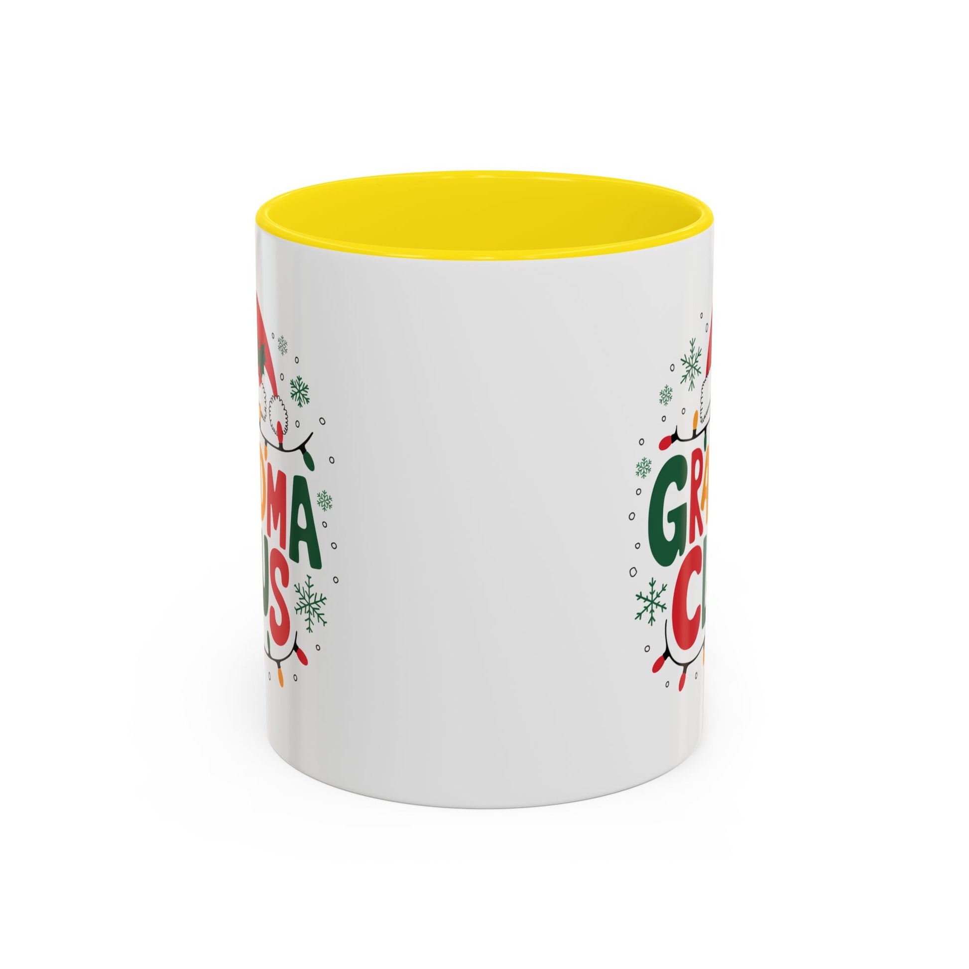 Christmas Mug - Grandma Claus Green Yellow & Red Text Hat Lights Stars