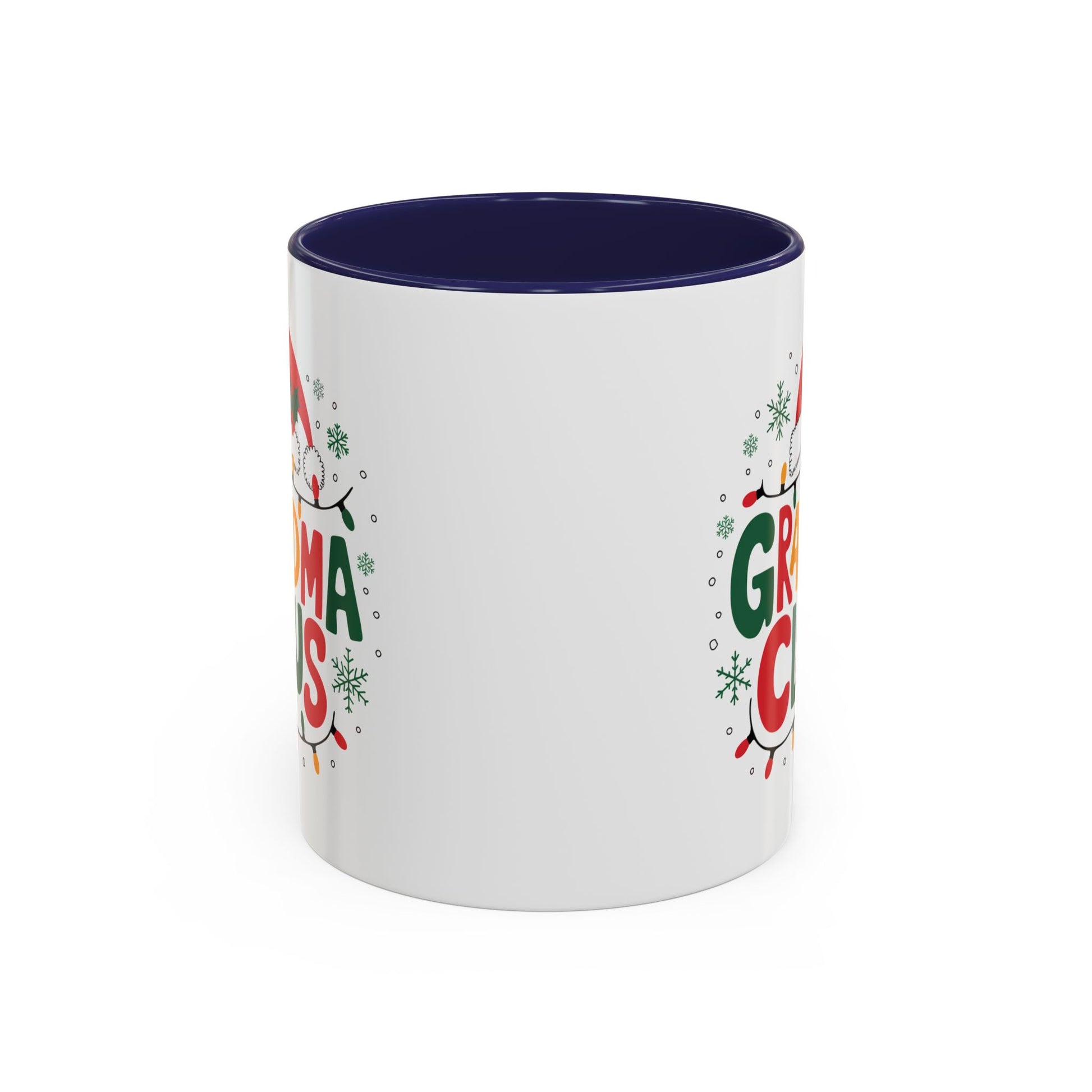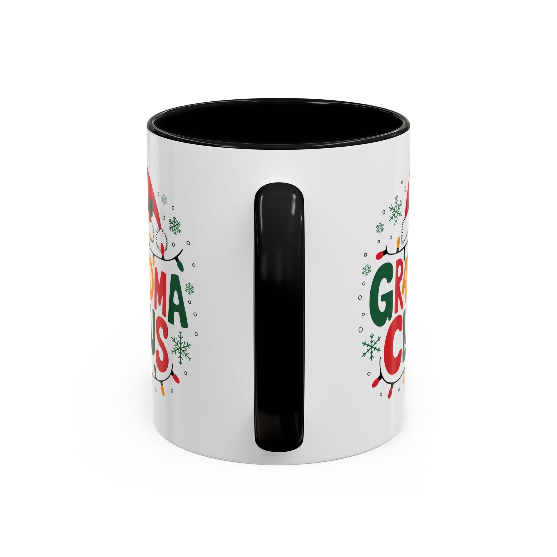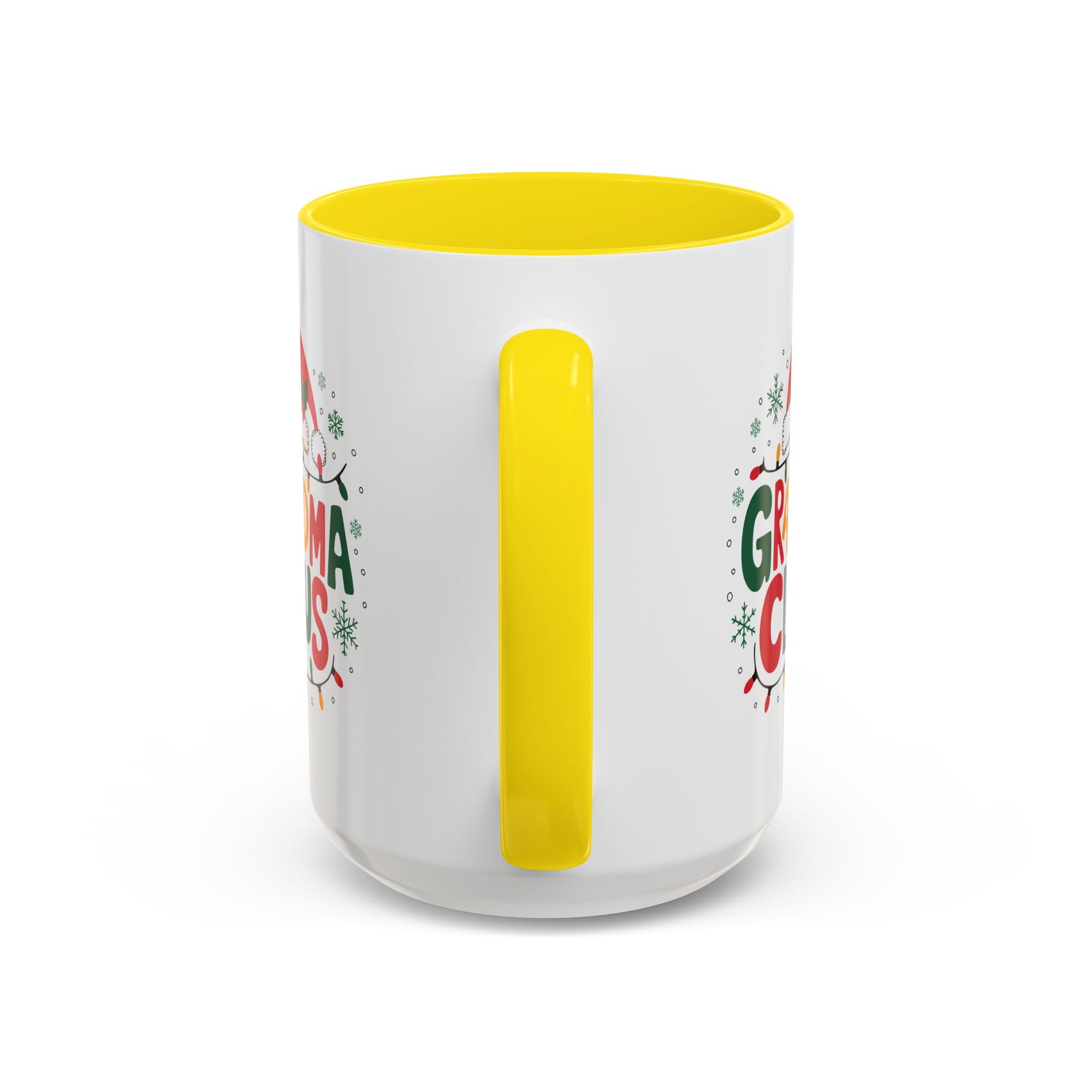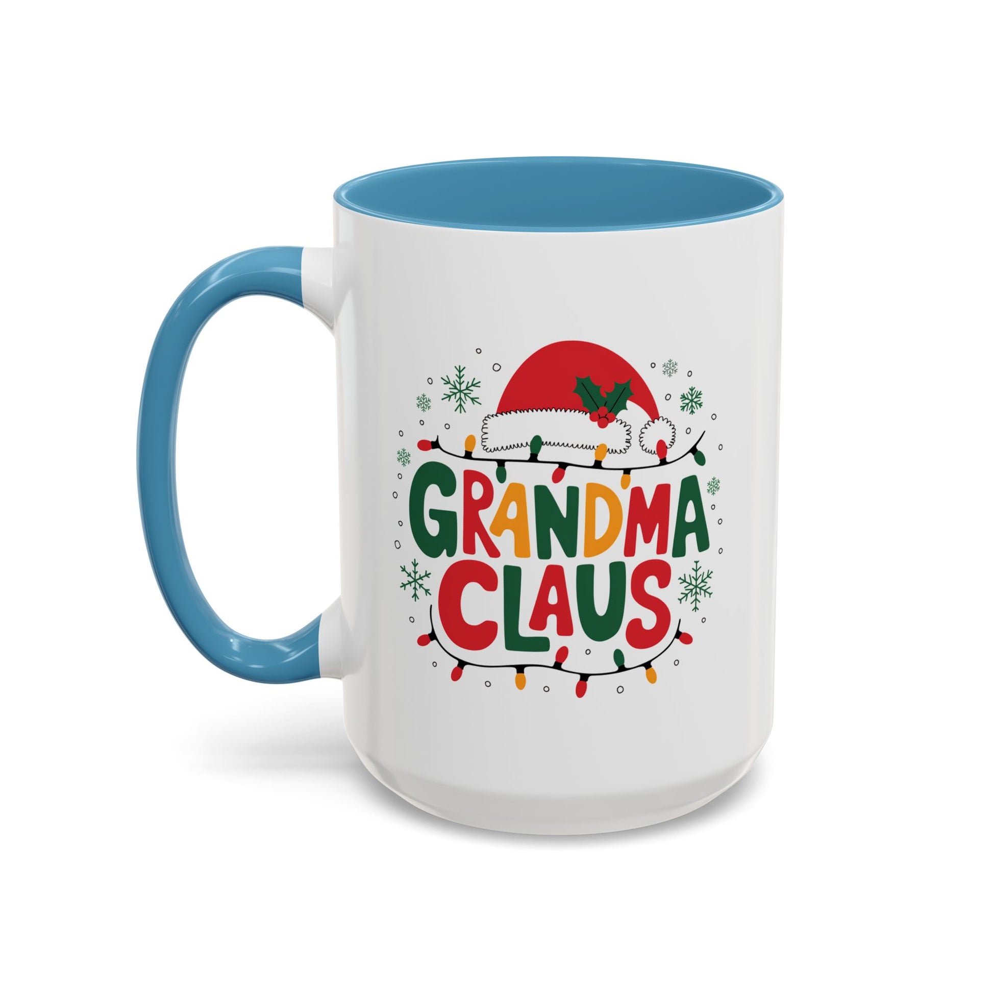 Christmas Mug - Grandma Claus Green Yellow & Red Text Hat Lights Stars