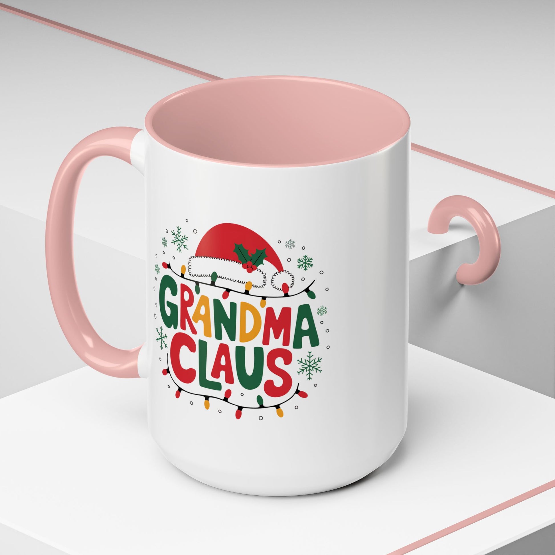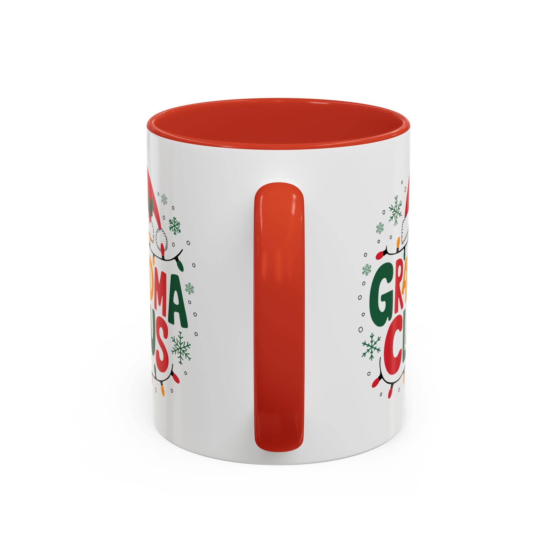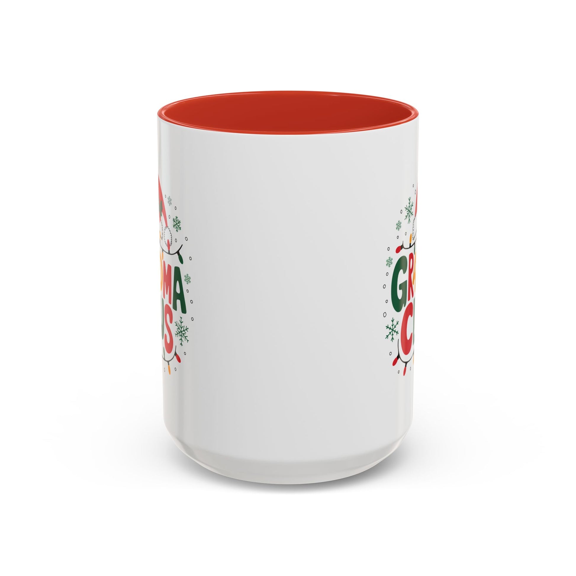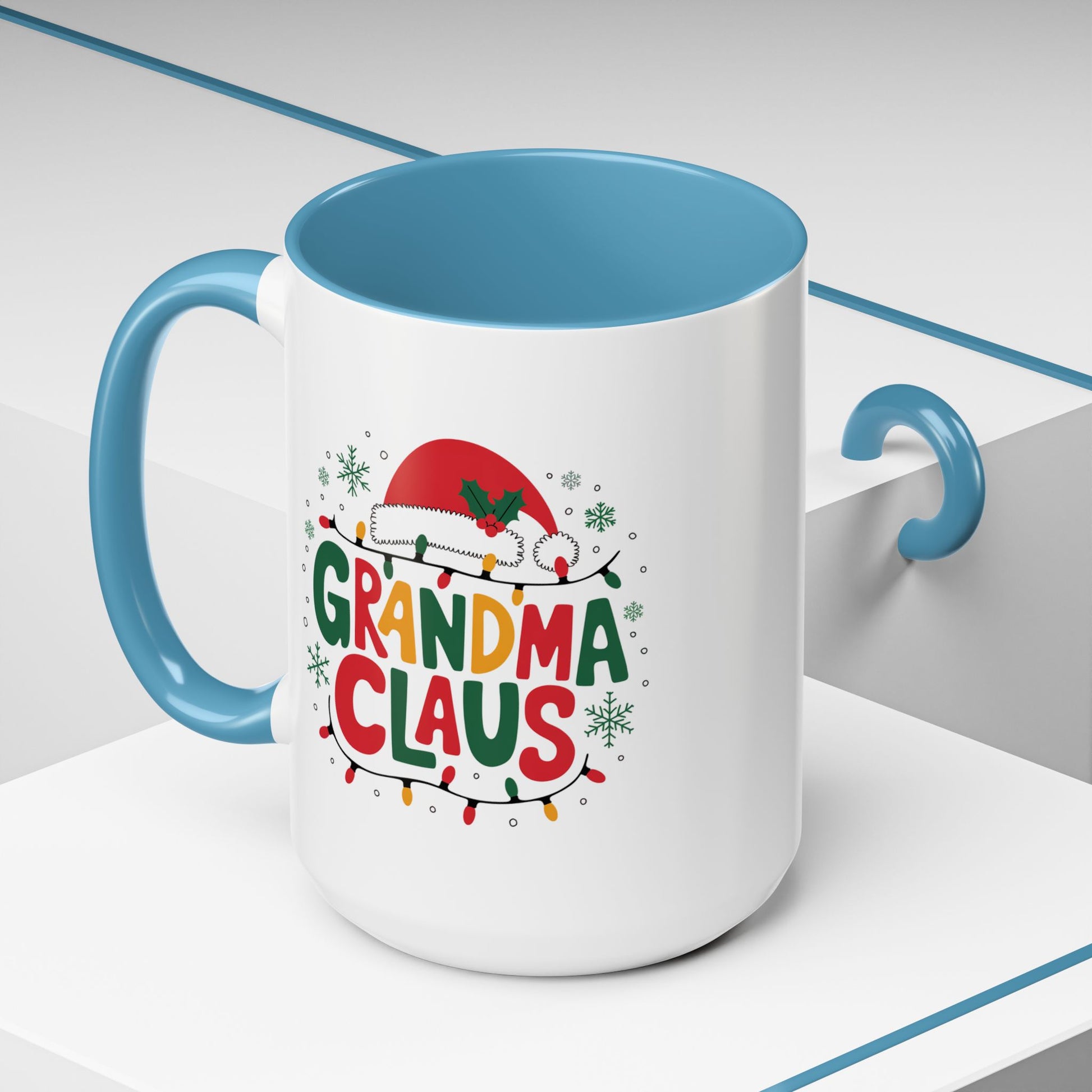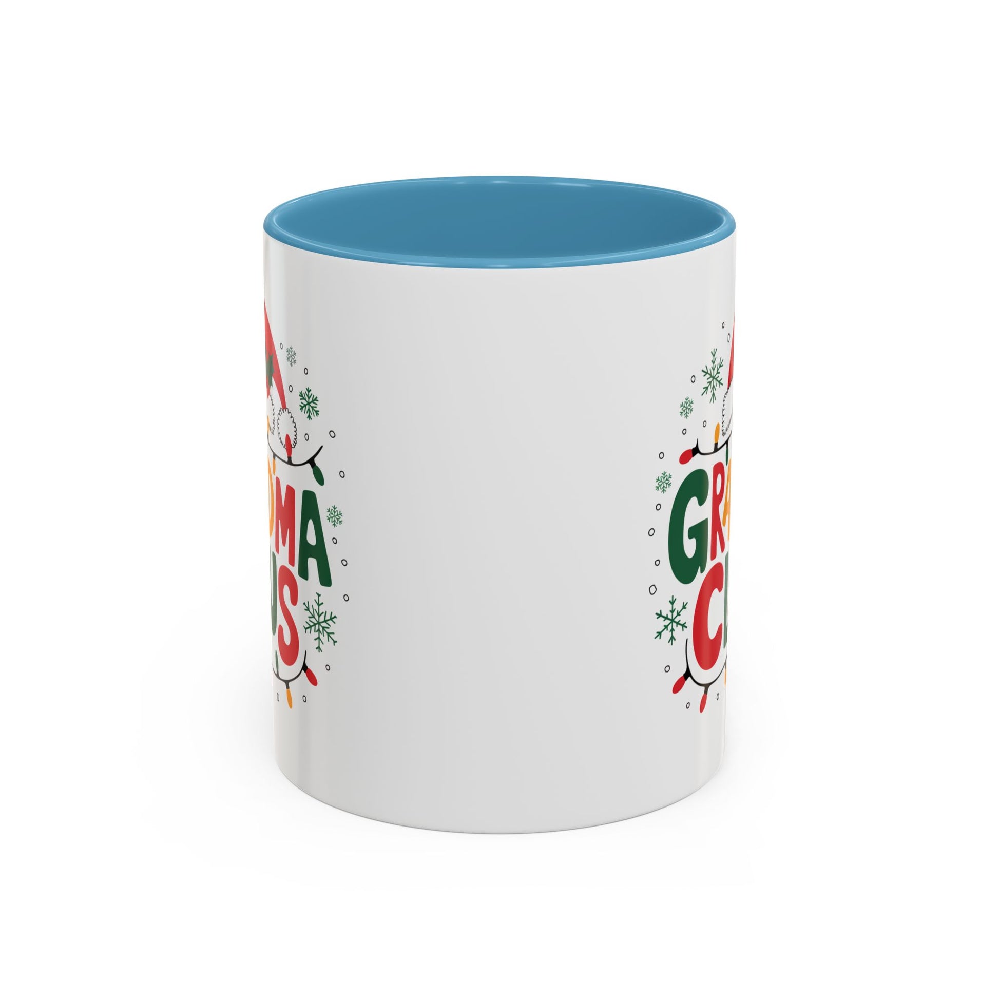 Christmas Mug - Grandma Claus Green Yellow & Red Text Hat Lights Stars