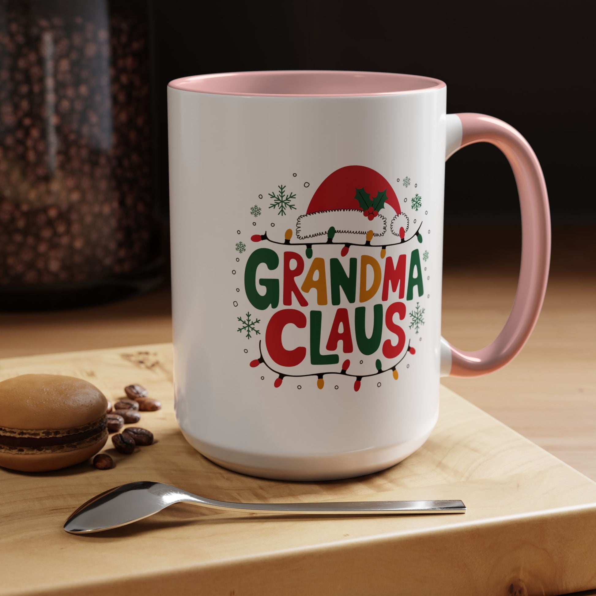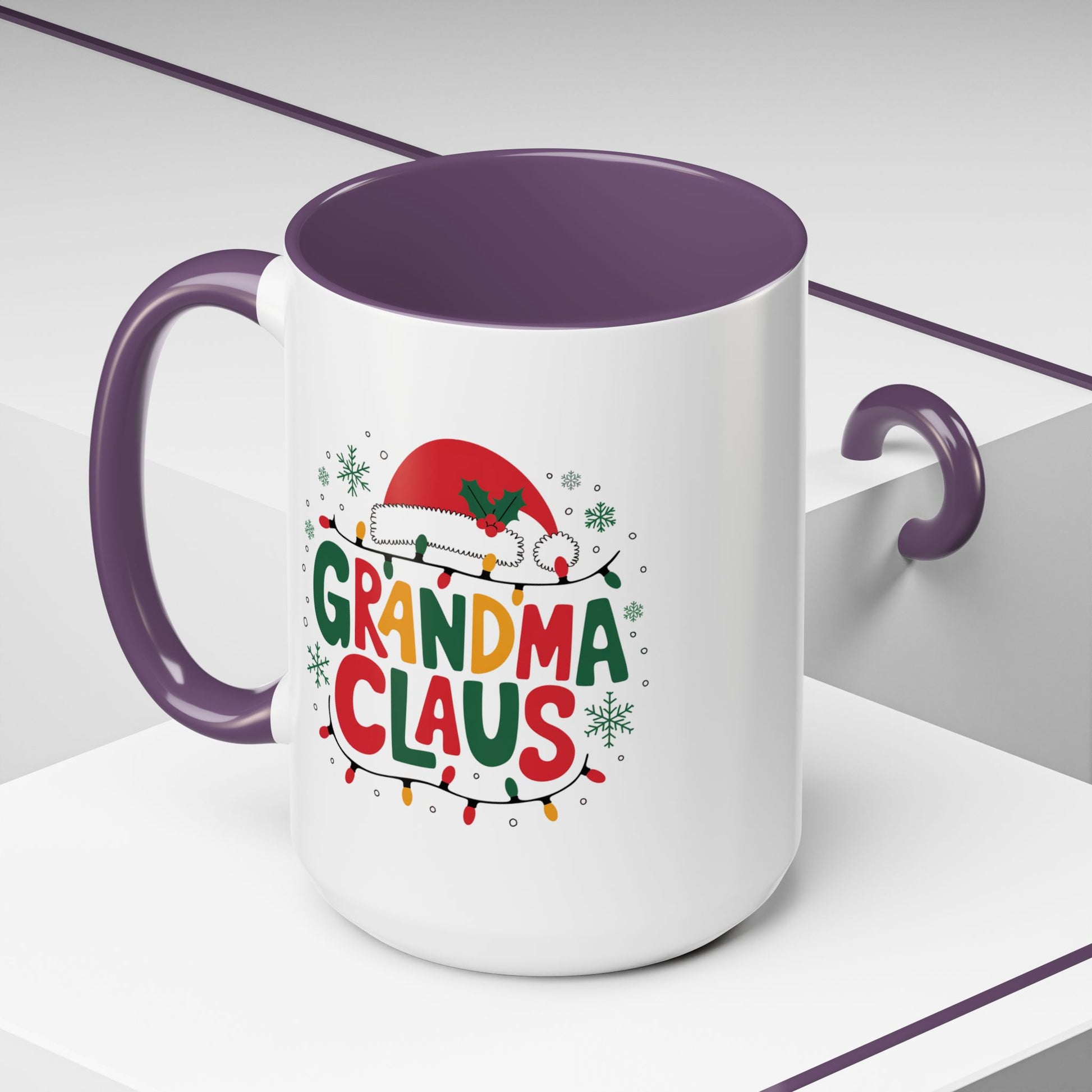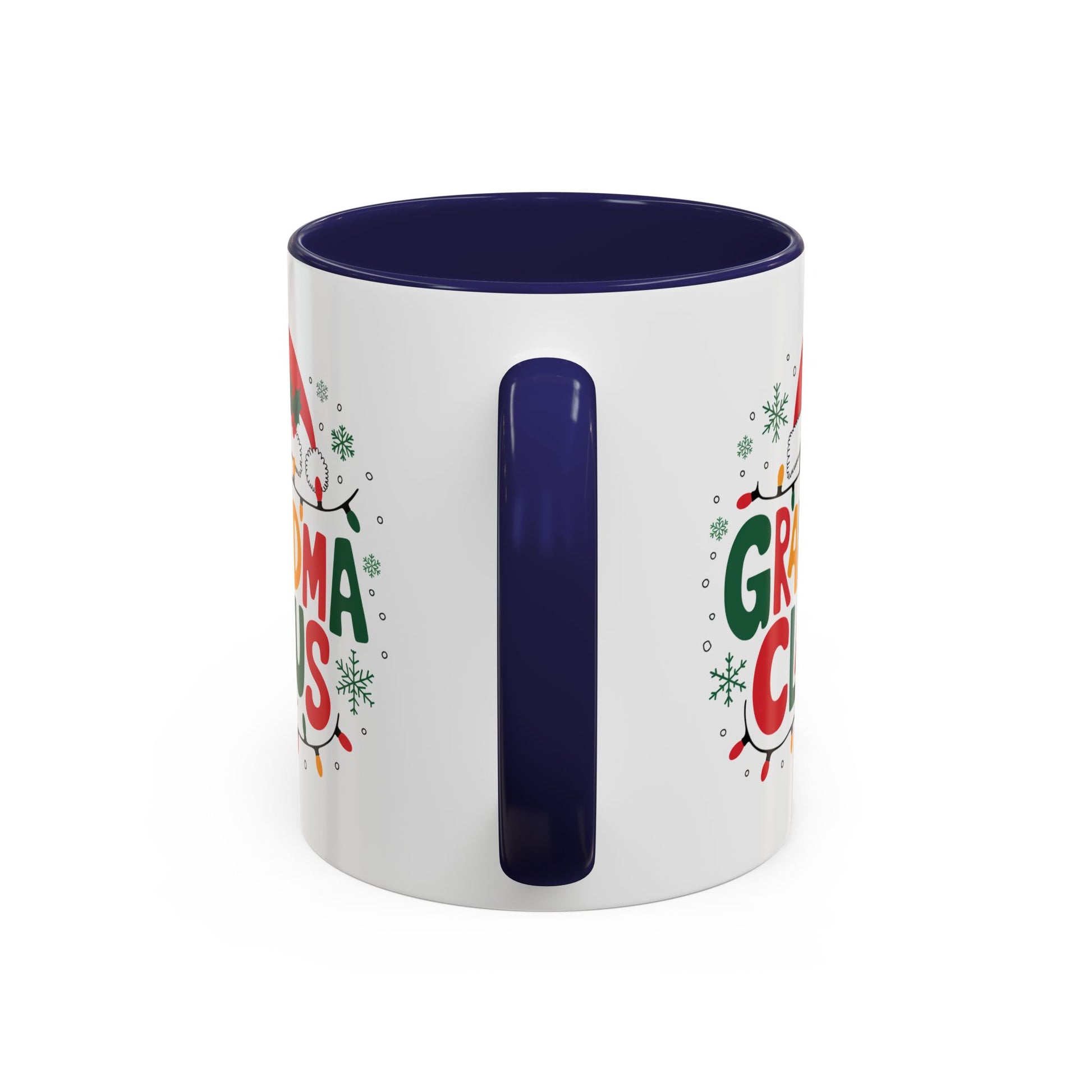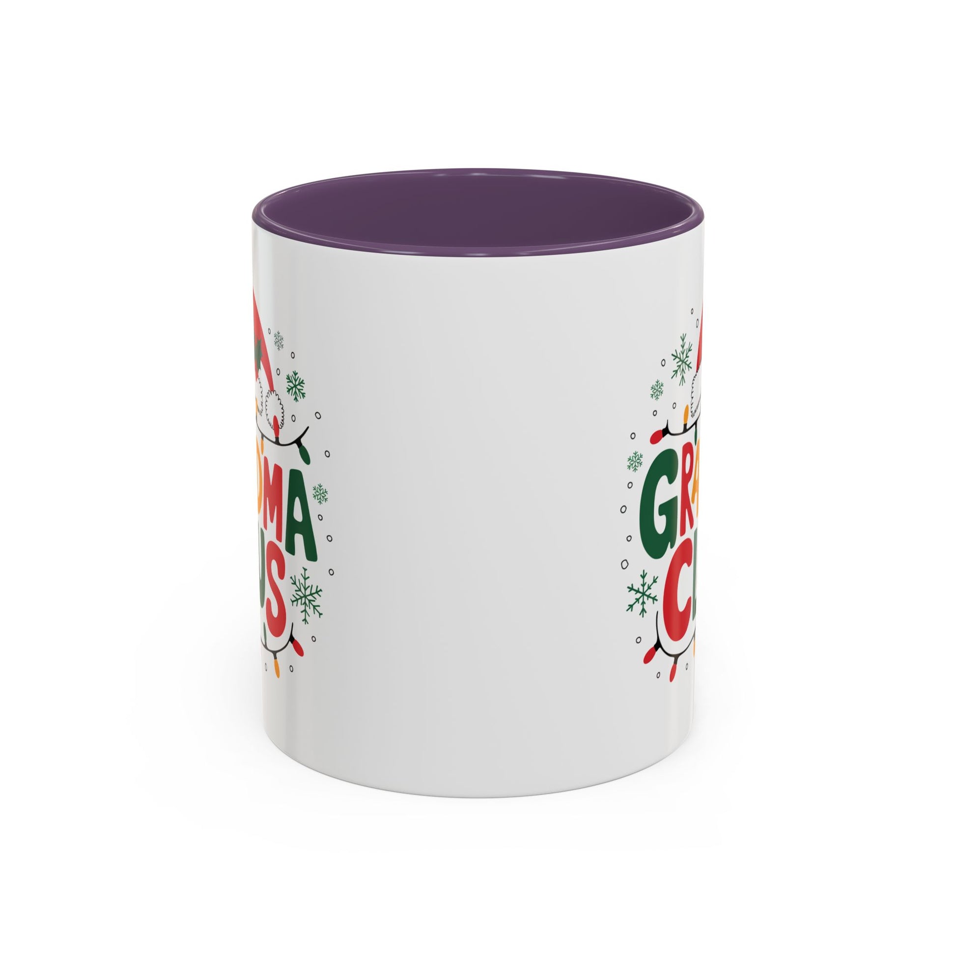 Christmas Mug - Grandma Claus Green Yellow & Red Text Hat Lights Stars