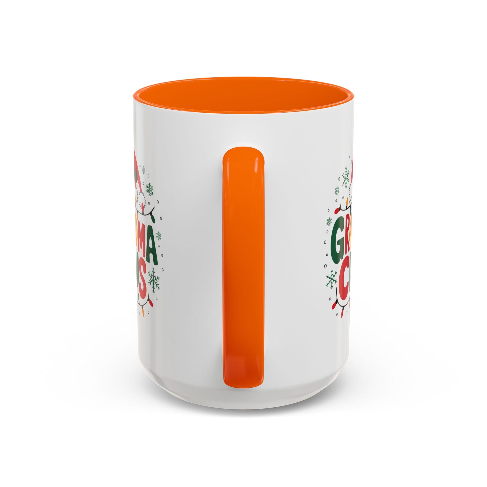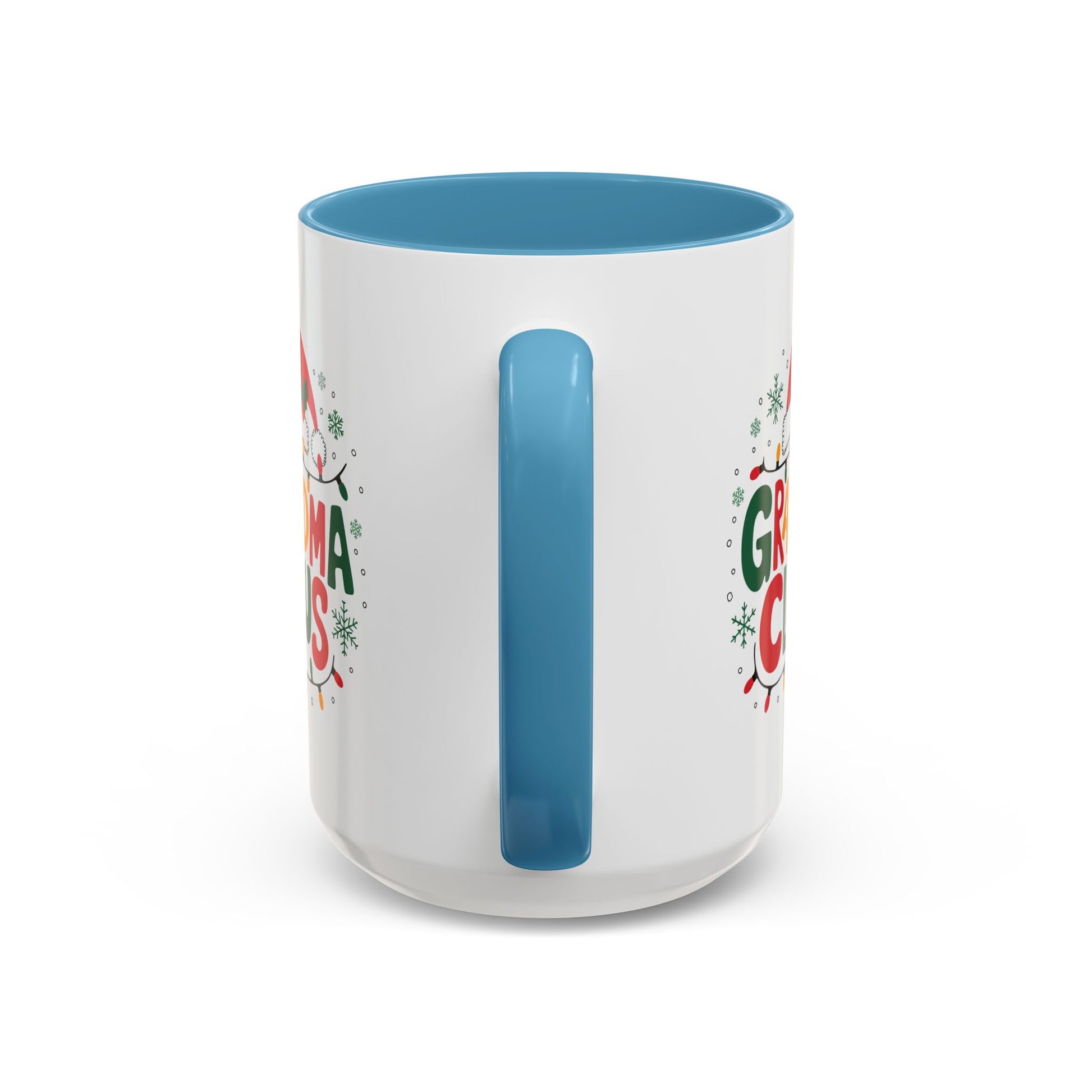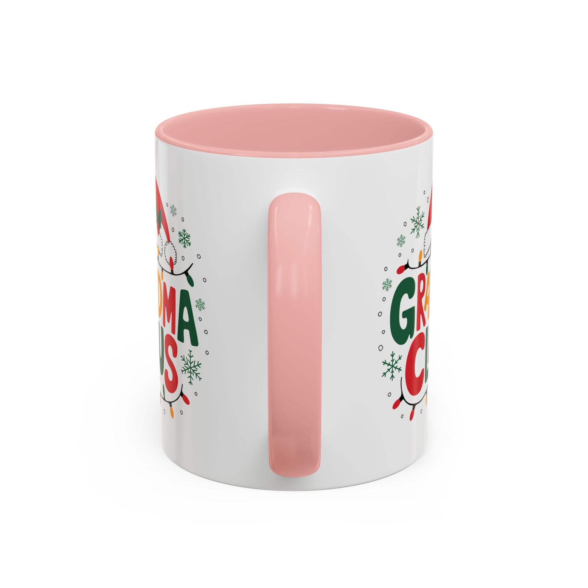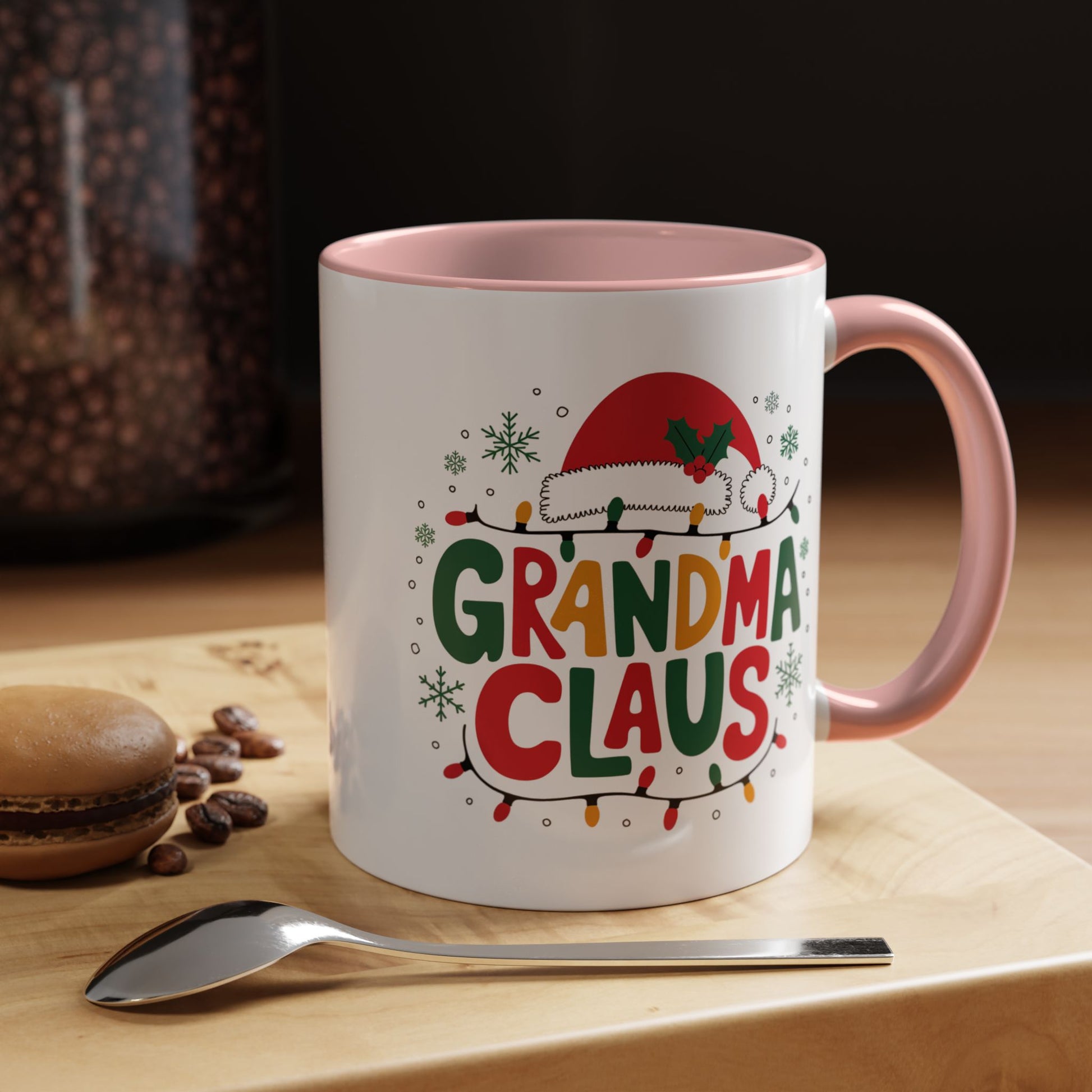 Christmas Mug - Grandma Claus Green Yellow & Red Text Hat Lights Stars