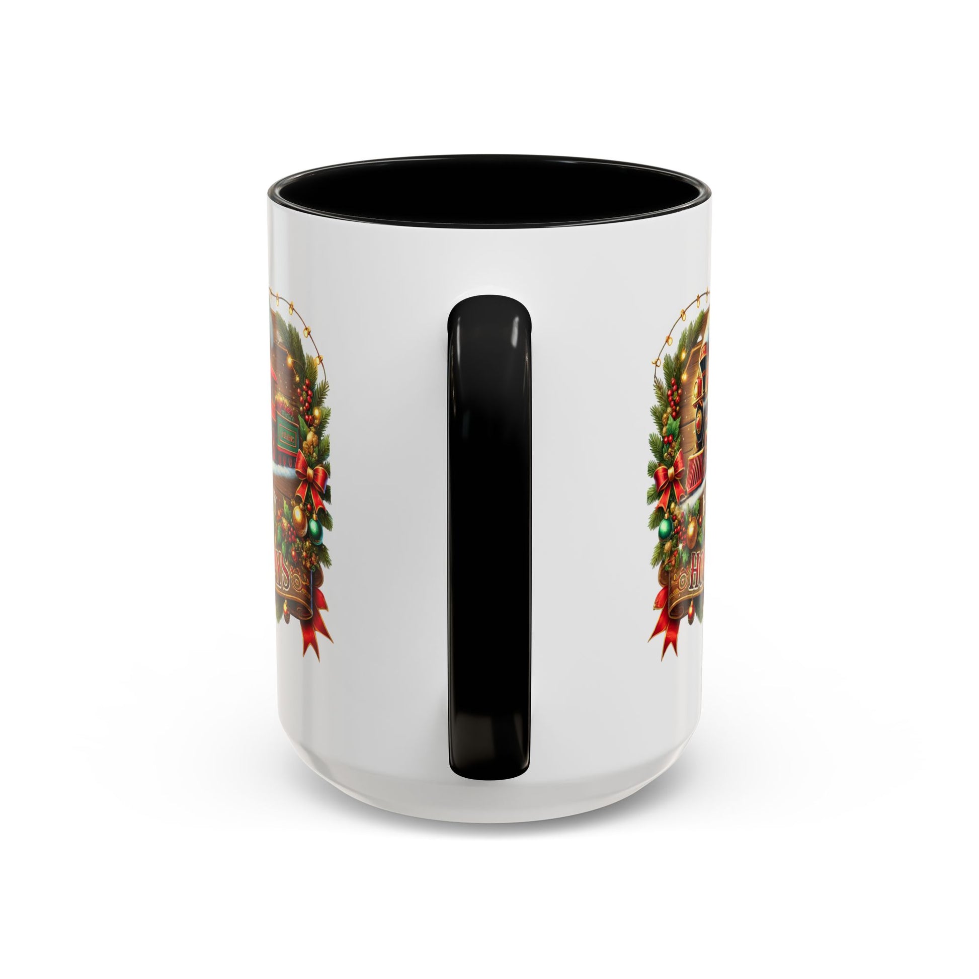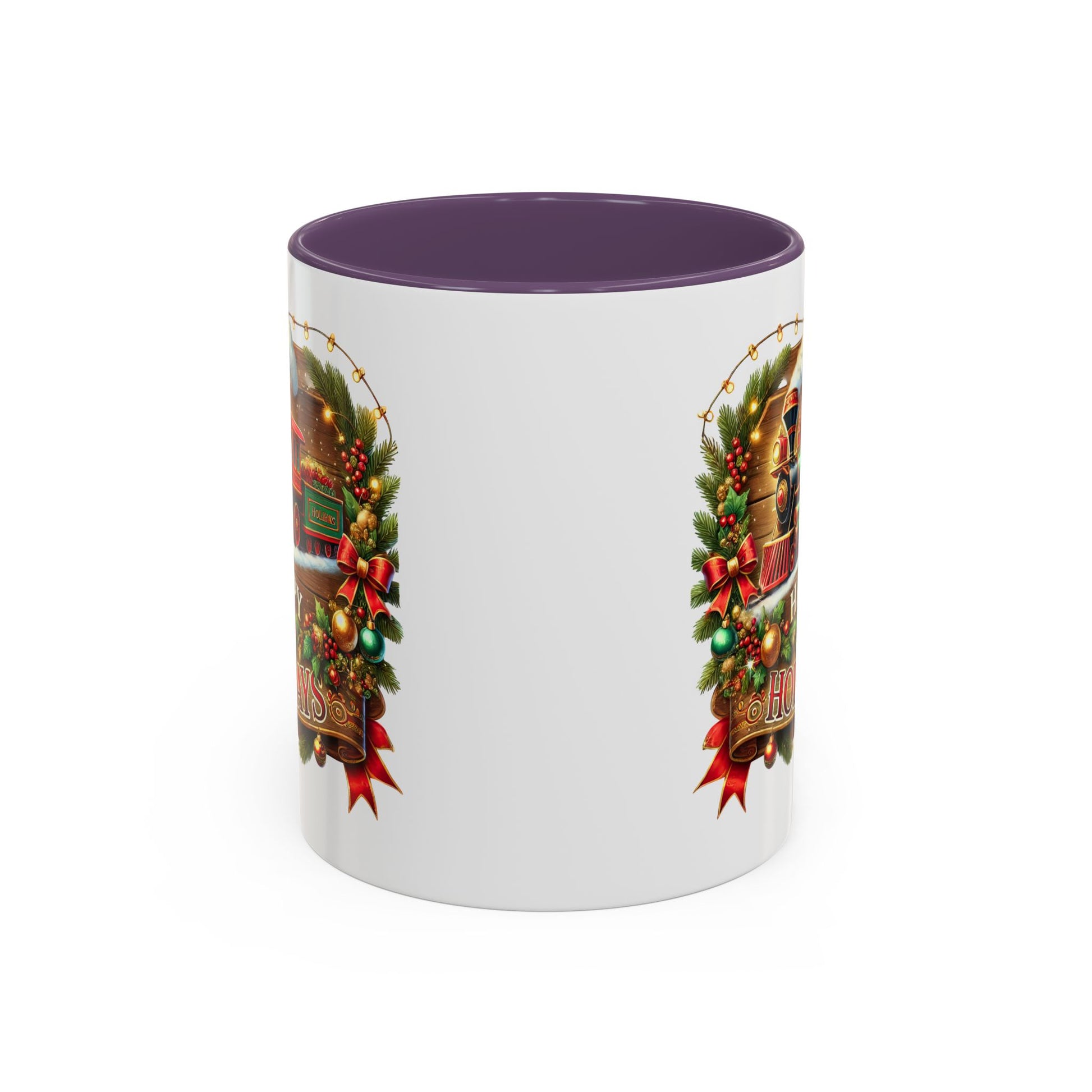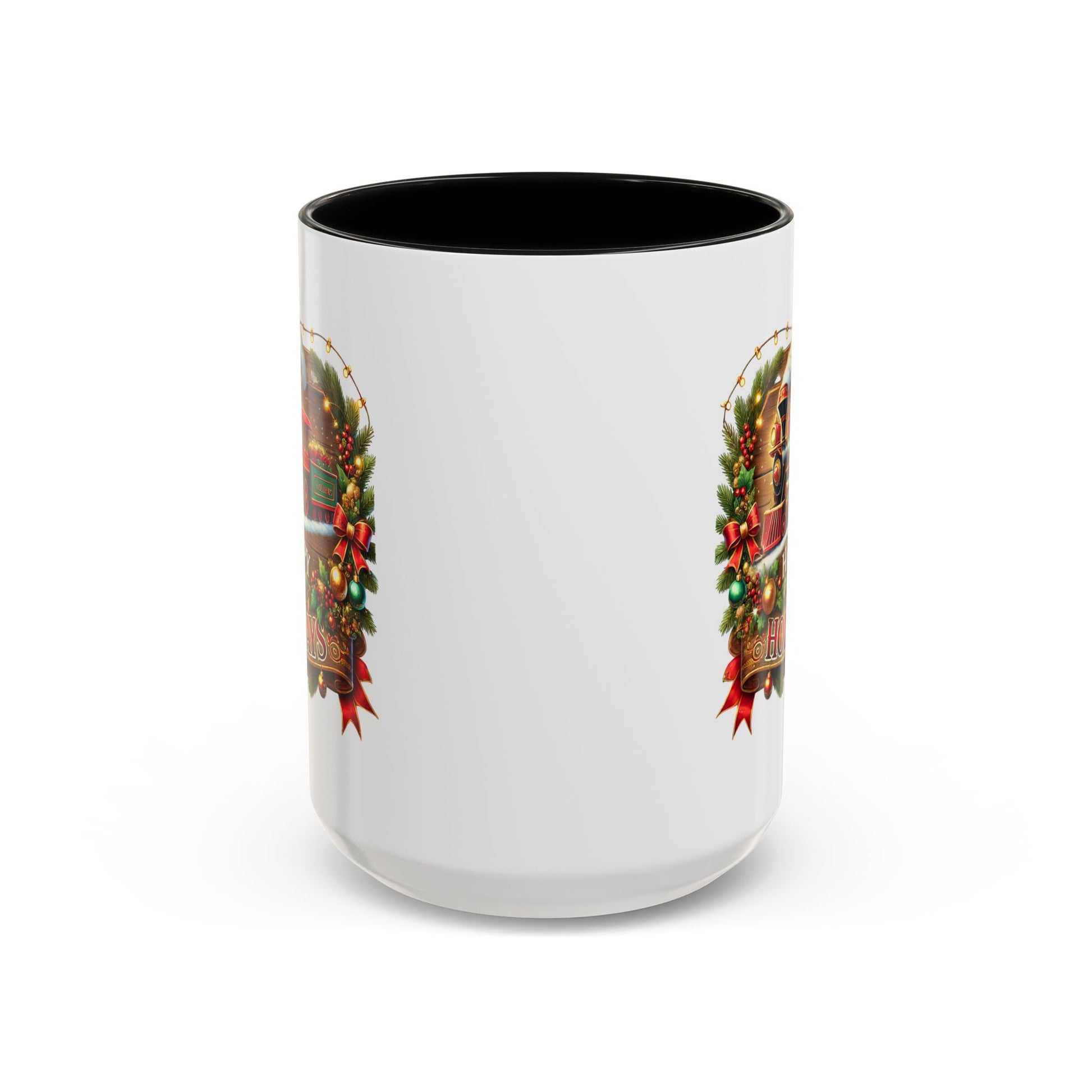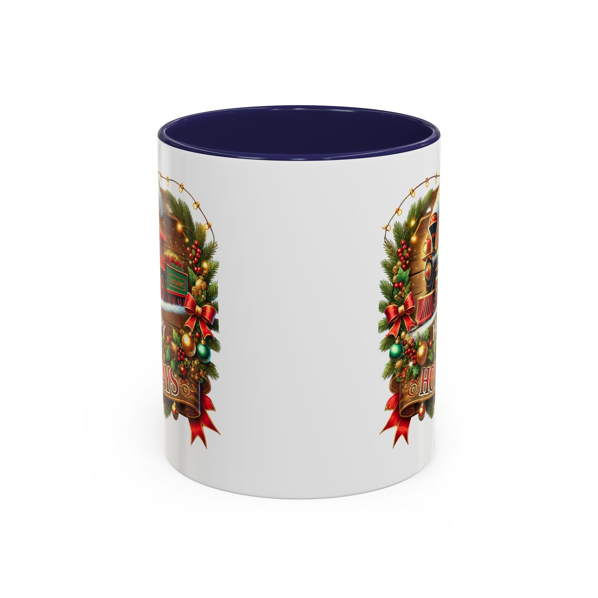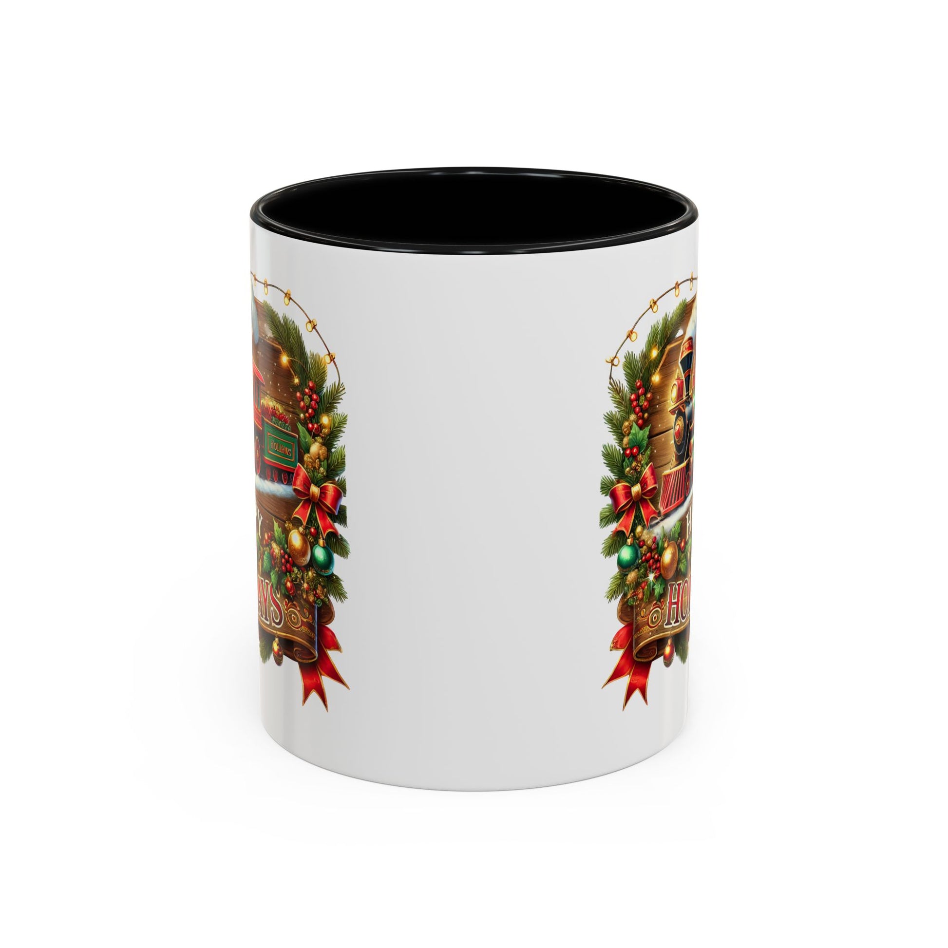 Christmas Mug - Happy Holidays White & Red Text Steam Locomotive