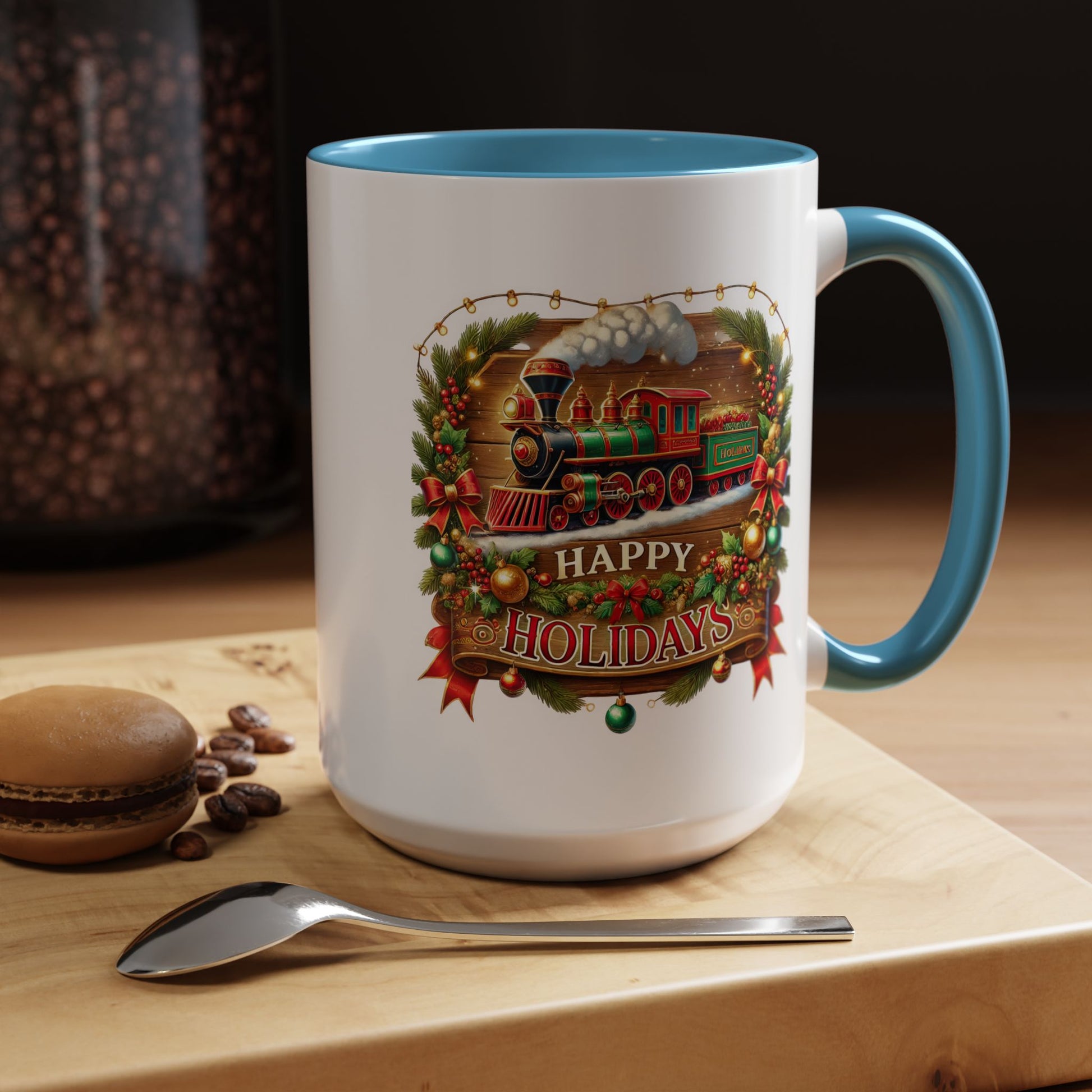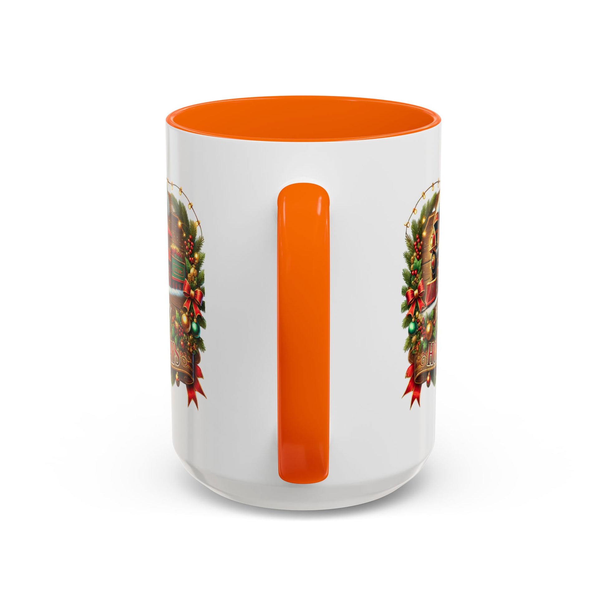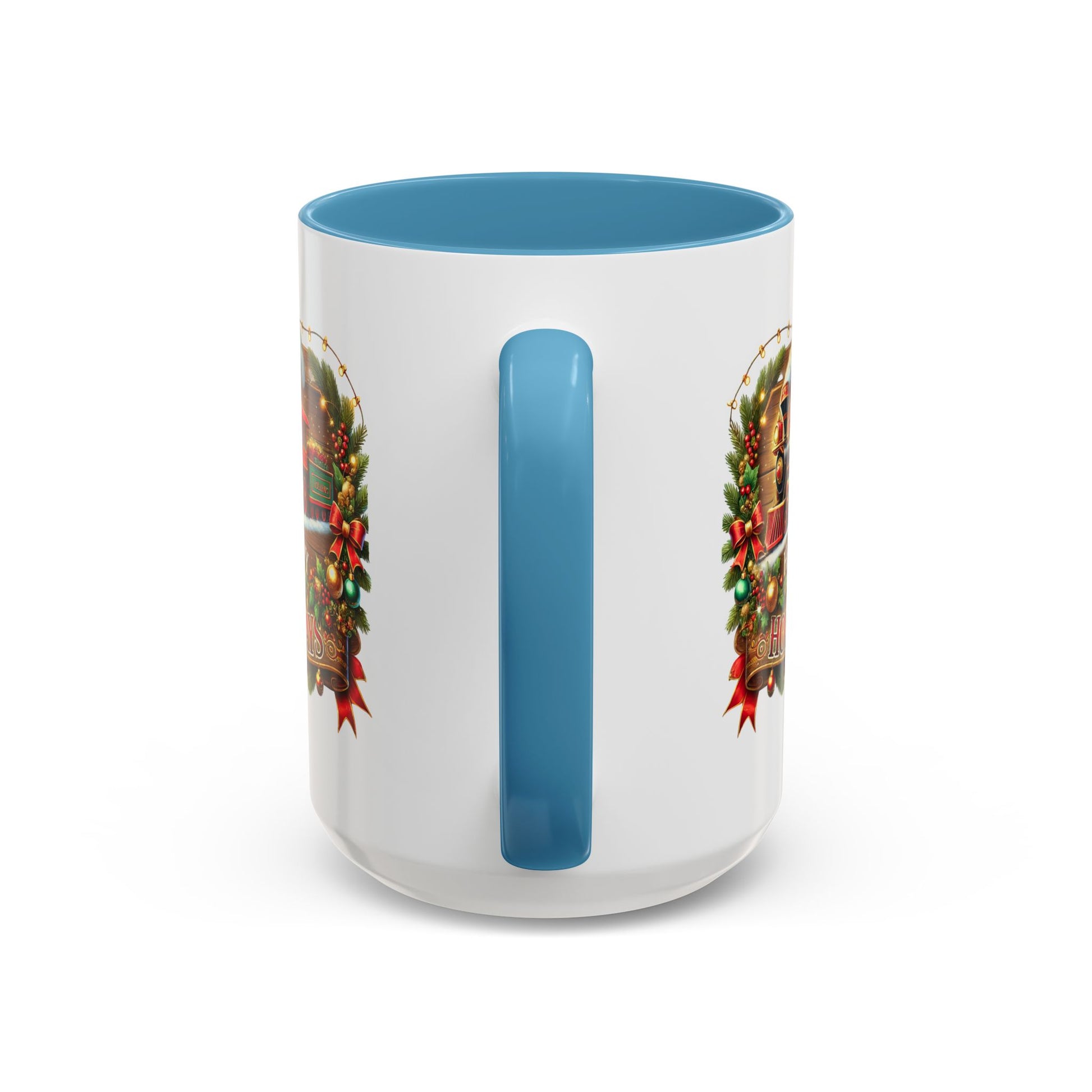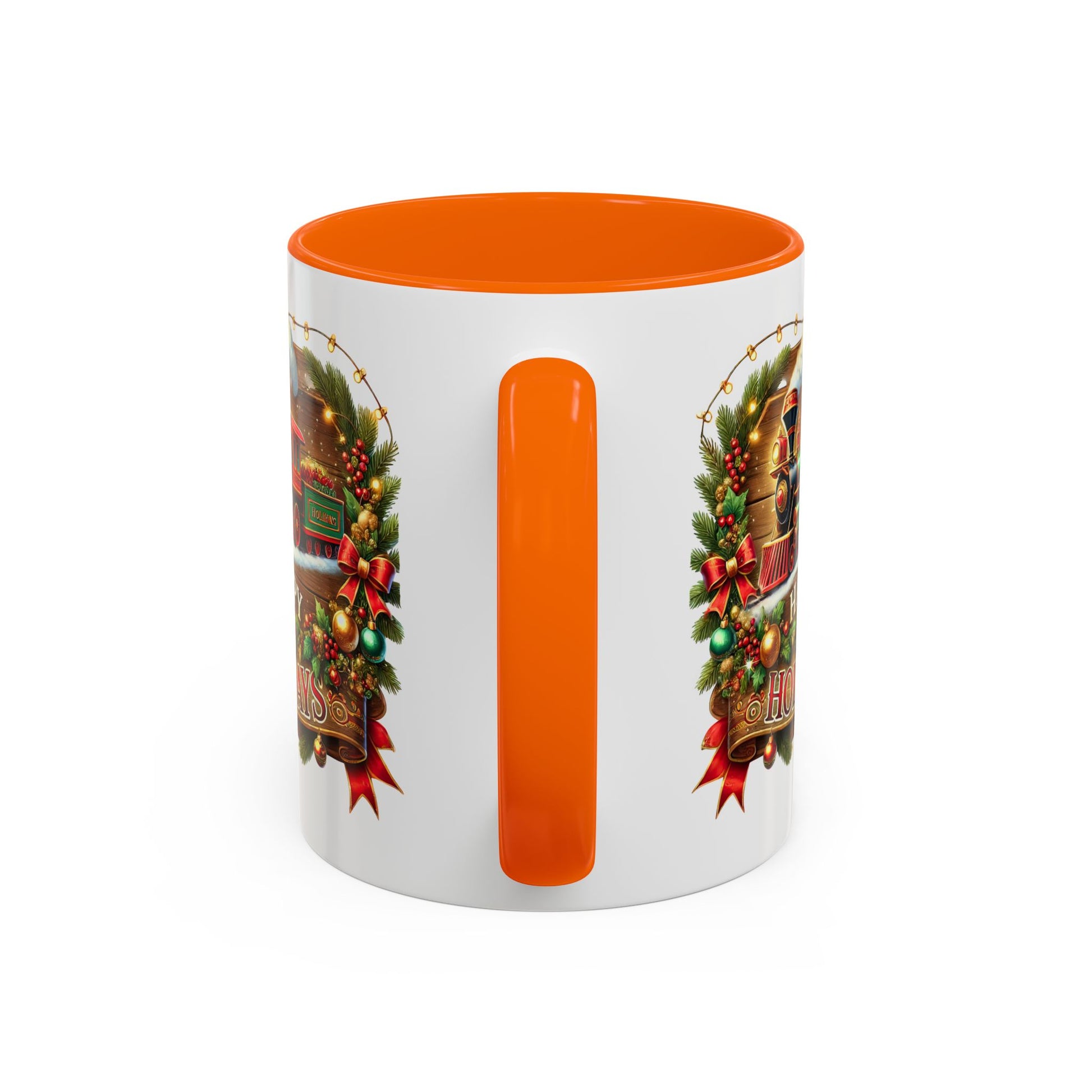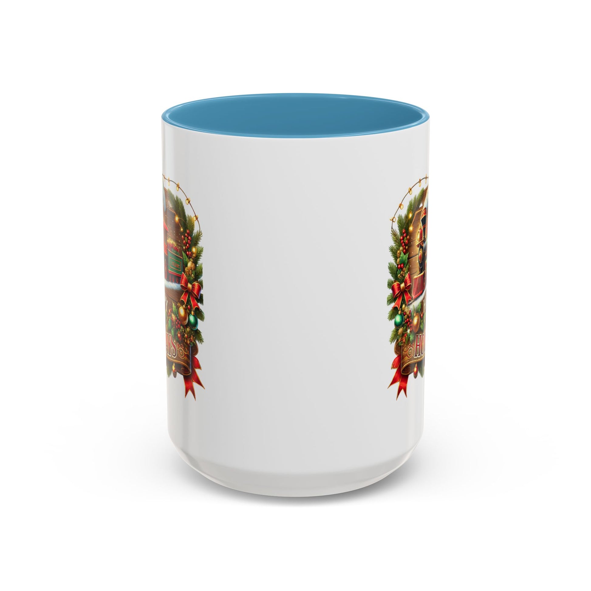 Christmas Mug - Happy Holidays White & Red Text Steam Locomotive