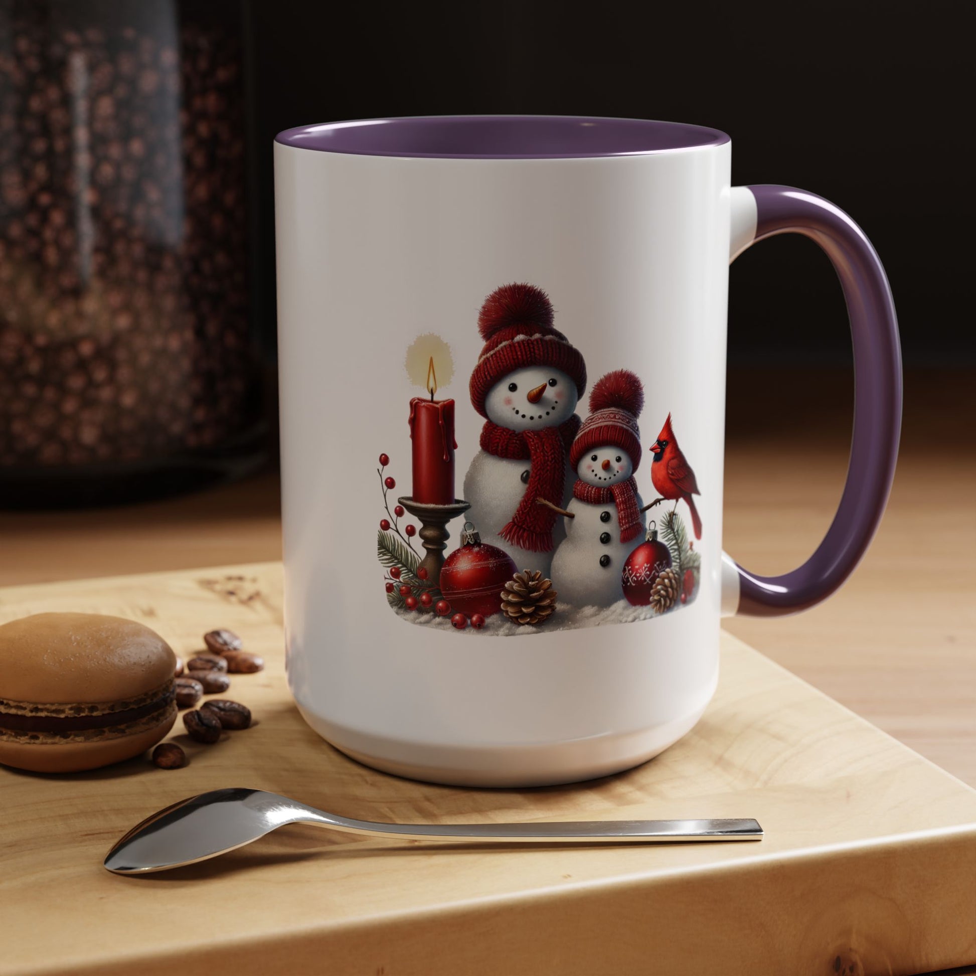 Christmas Mug - Burgundy Snowman Family
